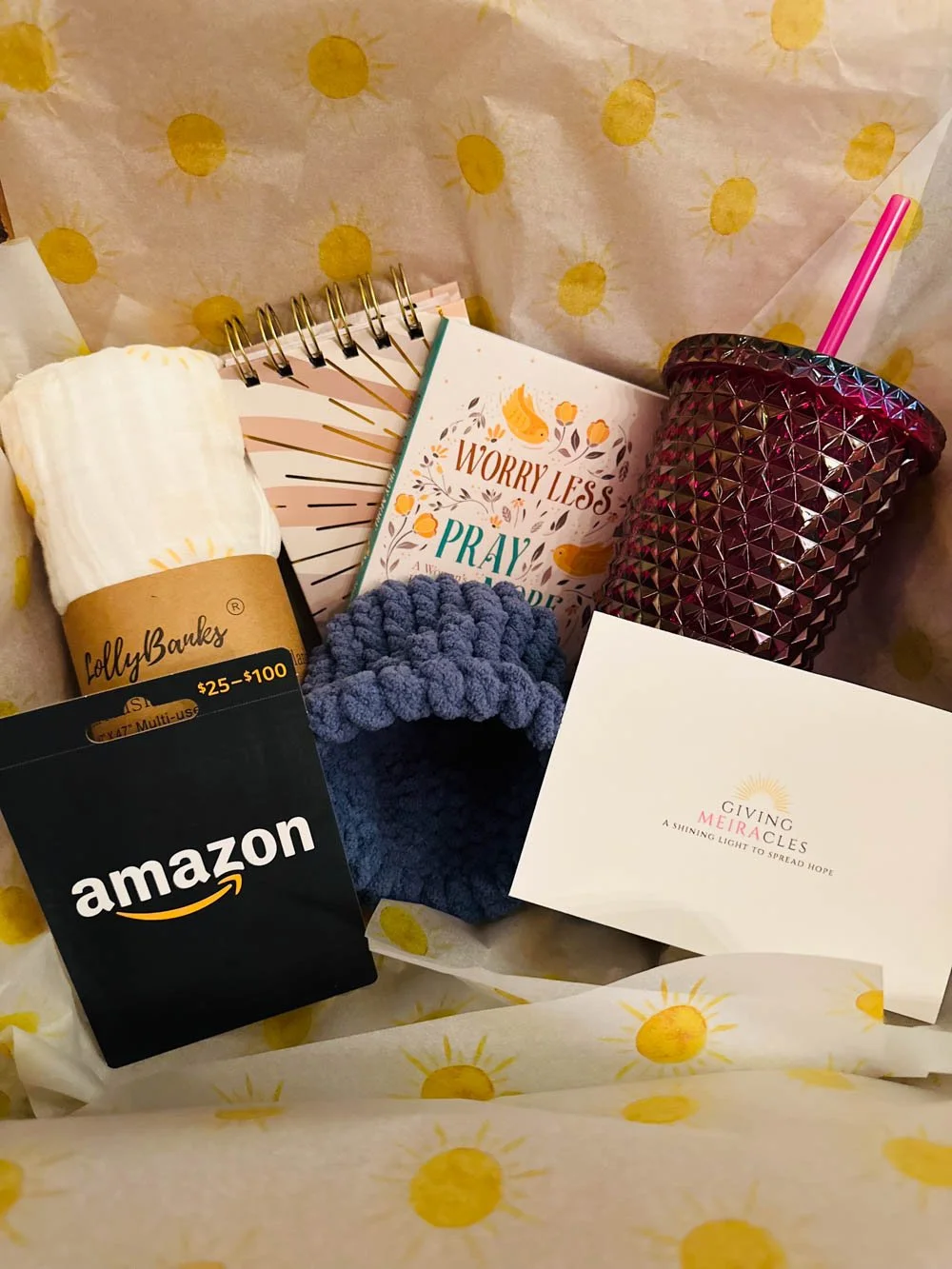 Our foundation creates personalized 'MEIRAcles' – which are personalized care packages designed to brighten someone’s day, lighten their load, and help families feel seen and loved during tough times.